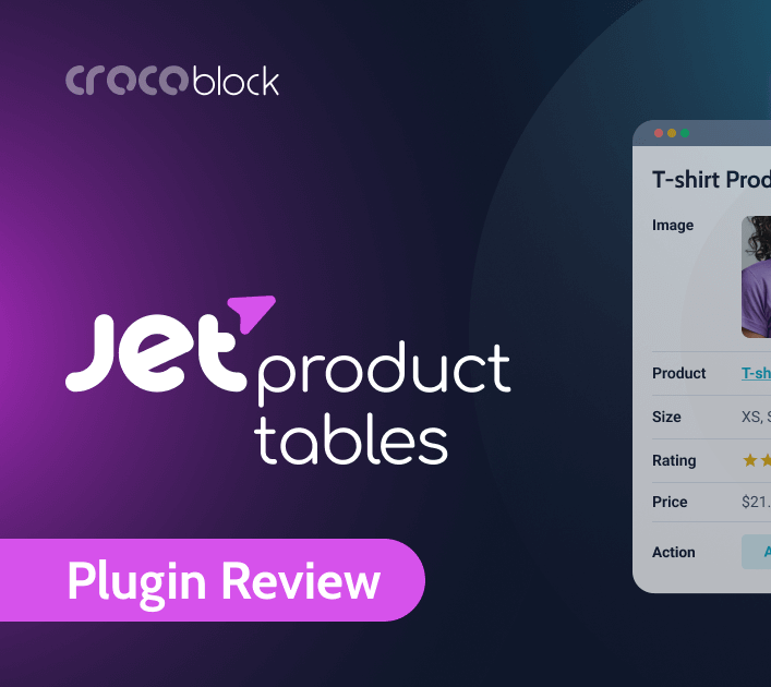 JetProductTables es un addon para WooCommerce que permite crear tablas de productos dinámicas, filtrables y totalmente personalizables. Ideal para catálogos grandes, listas de precios, tiendas B2B o sitios que necesitan mostrar muchos productos de forma organizada y rápida. Incluye filtros avanzados, ordenamiento, estilos visuales modernos y compatibilidad con contenido dinámico y Elementor.