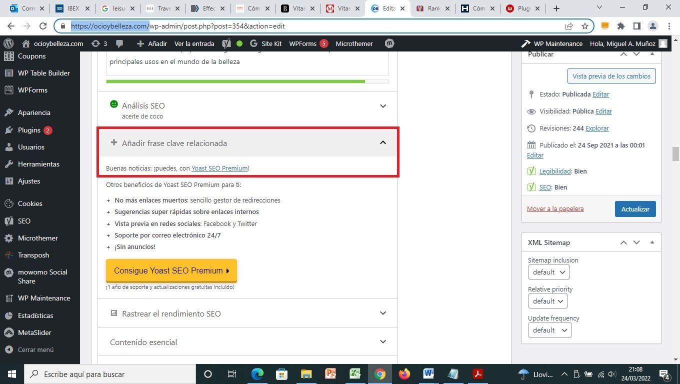 Yoast WooCommerce SEO Premium es un complemento especializado que potencia el posicionamiento de tu tienda online al optimizar productos, categorías y estructura de comercio electrónico. Añade marcado Schema específico para productos, precios, inventario y valoraciones, facilitando la aparición en rich snippets de Google. Mejora breadcrumbs, títulos, descripciones y metadatos para lograr fichas de producto más claras y atractivas. También integra datos de OpenGraph para compartir mejor en redes sociales, además de automatizar partes clave del SEO técnico. Ideal para tiendas WooCommerce que desean aumentar visibilidad, CTR y conversiones con una optimización profesional y completa.